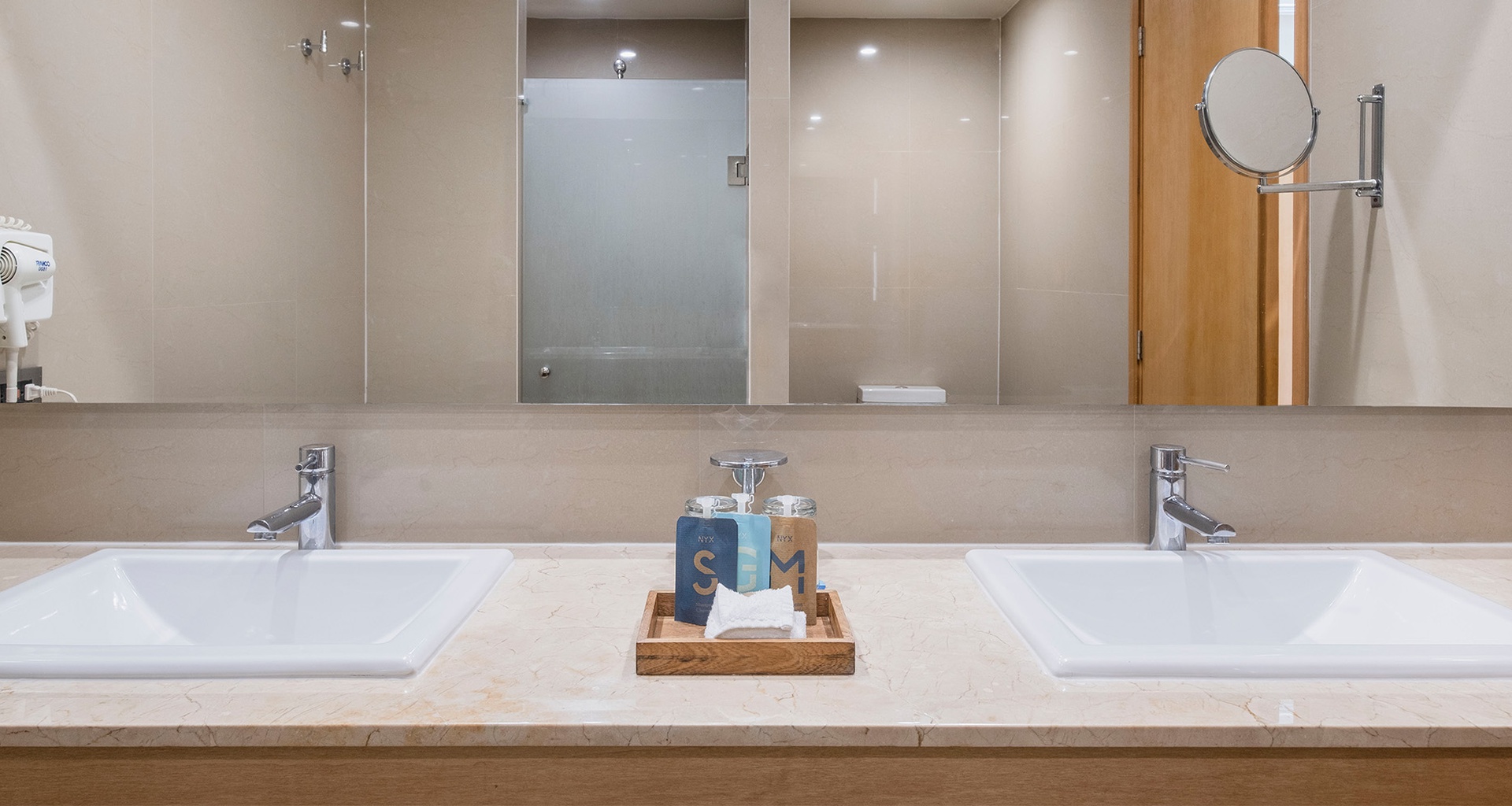 La Master Suite es la máxima representación del lujo del Hotel NYX Cancún. Distribuida en un espacio de 58 m2 y con una capacidad máxima de tres personas, esta estancia ofrece a los huéspedes las mejores vistas del mar Caribe. Además, destacan las lujosas y vanguardistas líneas de diseño de su mobiliario y de decoración.